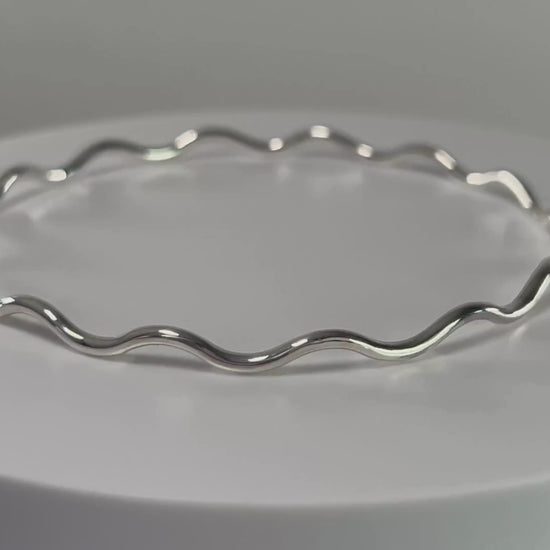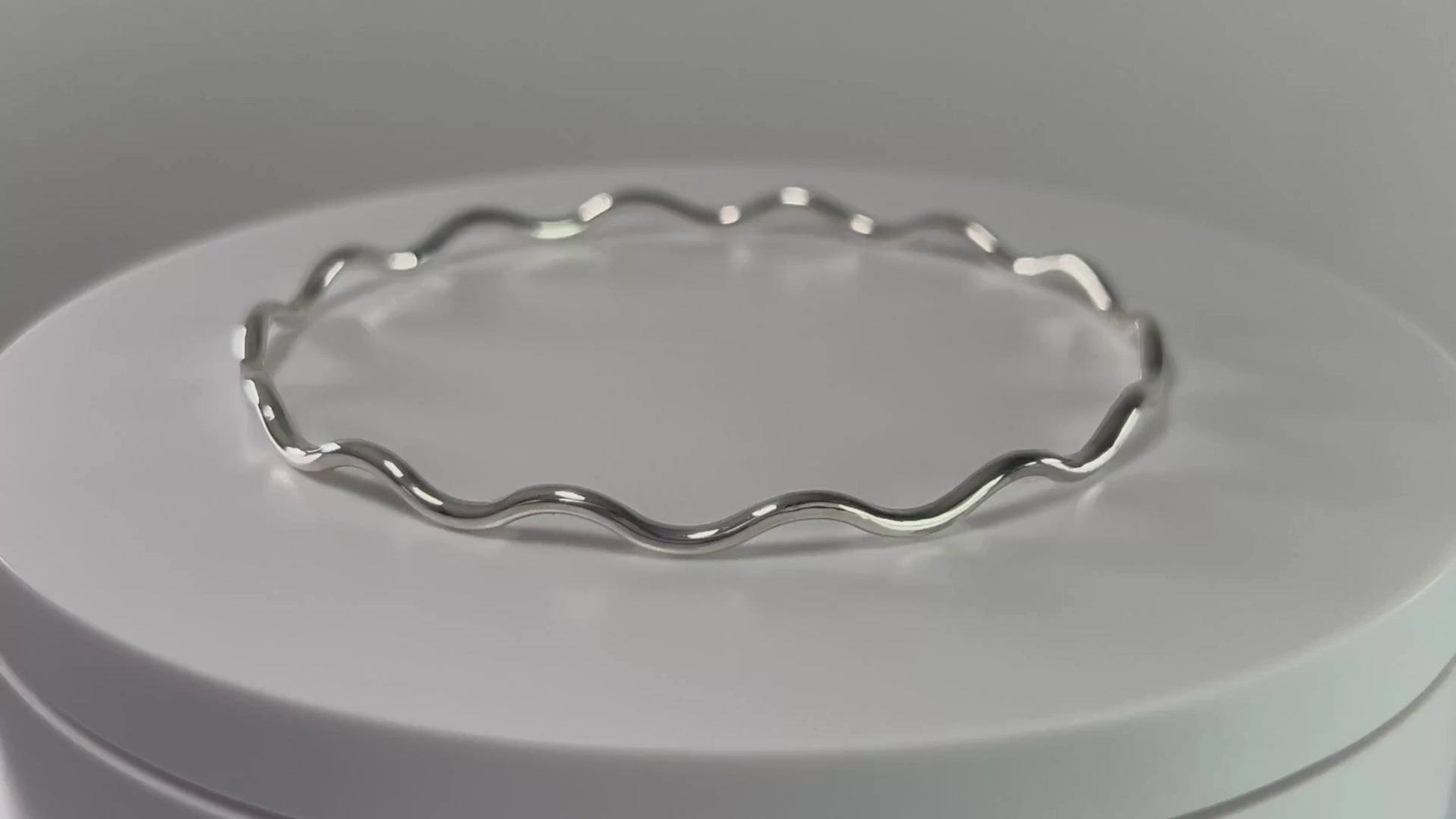 Handcrafted from 2mm round sterling silver wire, this wavy bangle combines elegance and simplicity in a timeless design. Each piece is individually handmade, giving every curve a natural, organic flow that catches the light beautifully.